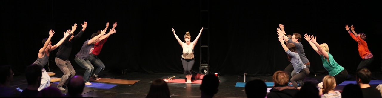 Everyone is welcome to do yoga. There are seats for folks with mobility issues and anyone who is shy but I have a strong sense that you will be on the mat soon enough when you see that it’s fun and I’m not pointing anyone out. I HATE audience participation when I watch theatre, so I make my shows really friendly and easy to be involved in. The goal is you find yourself saying “I cannot believe I’m doing this, and it’s so. much. fun.” Also, it’s built as a beginner class so everyone can access the poses.